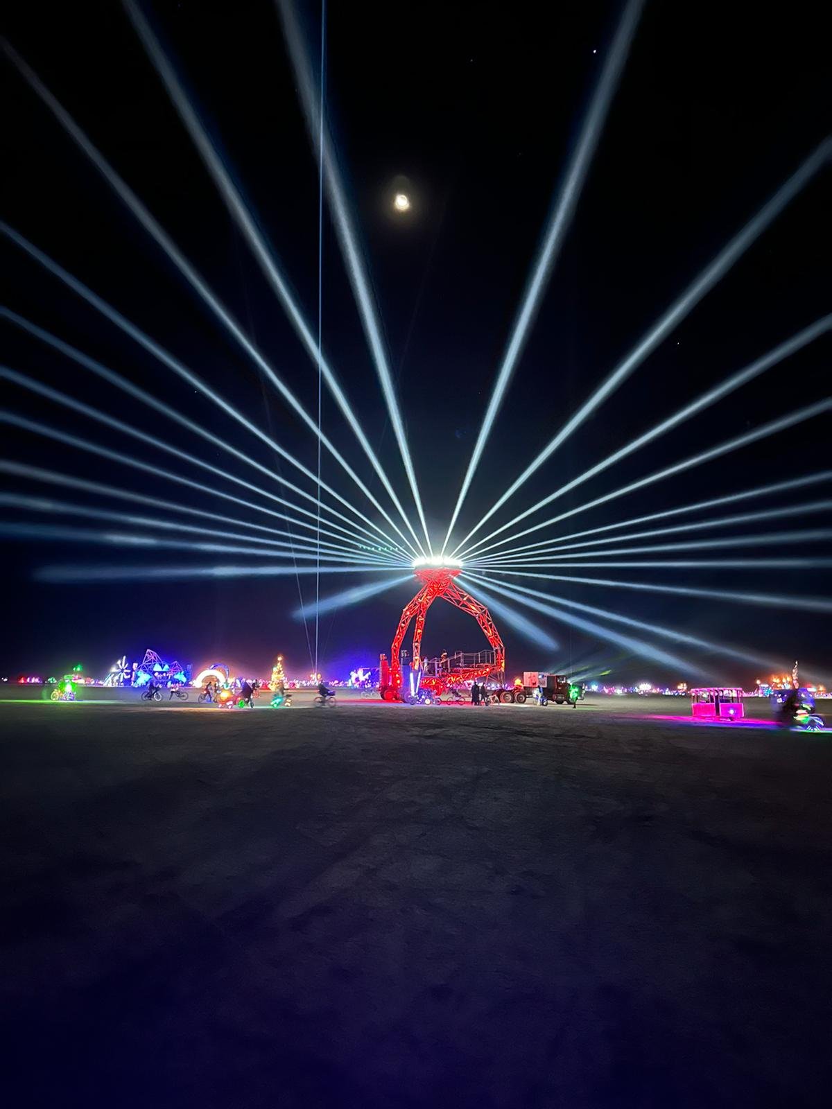 the world opened up became a new world order and the idea of burning man came about. the physcadelic dreams of some inventive mushroom eaters of 20 odd years ago this year recieved a little bit of buttonlight magic.